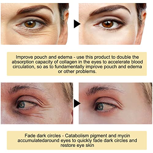 Puffy Eyes Use under eye patches 1 time a day for 60 days to solve Puffy Eyes problems Eye Fine Lines Use eye mask to repair the skin around the eyes and reduce fine lines around the eyes Dark Circles Use eyes care 1 time a day for 45 days to solve Dark Circles problems Eye Bags Use the eye mask to tighten the skin, make the skin around the eyes more elastic and reduce eye bags